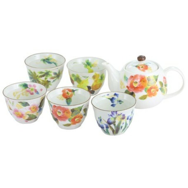 日本美濃燒茶壺套裝(花風雅) (日本製)