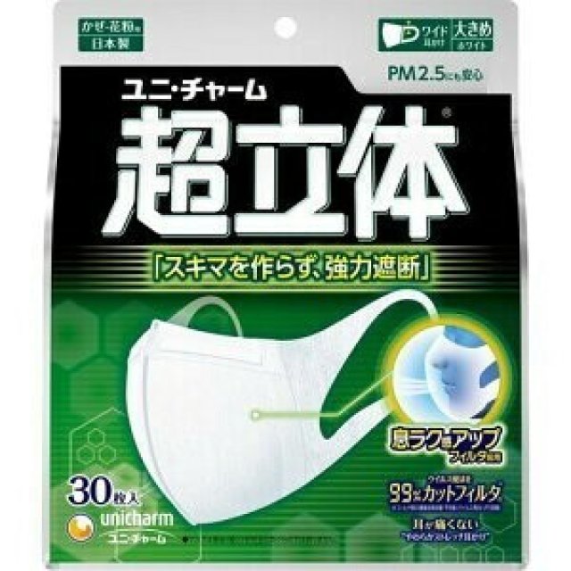 日本Unicharm超立體口罩(大型Size) (30枚入) (日本製)