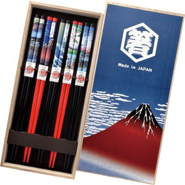 日式東海道赤富士天然木筷子禮盒 (5對入) (日本製)