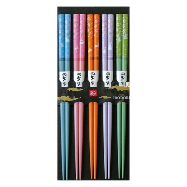 日式花卉傳統圖案天然木筷子 (5對入) (日本製)