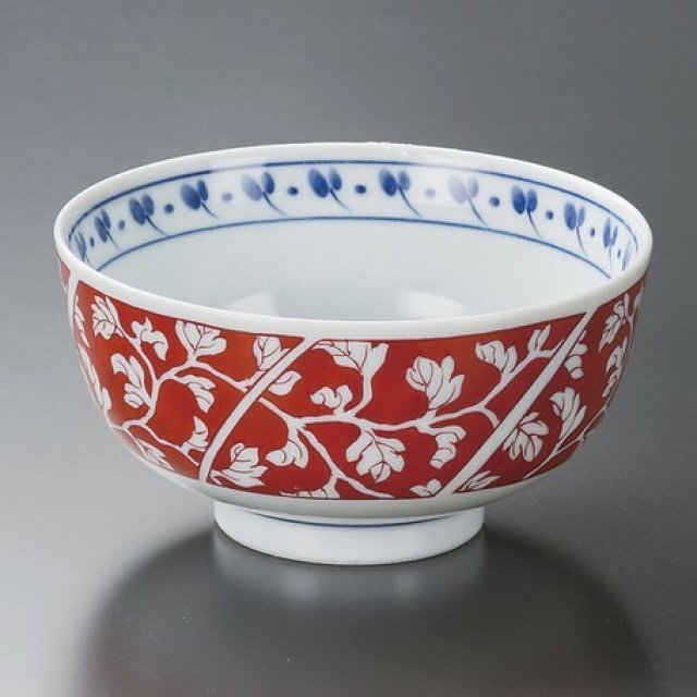 日本美濃焼赤濃唐草瓦碗14CM (日本製)