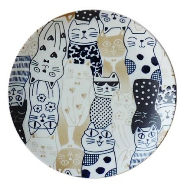 日本美濃焼AWASAKA貓貓瓦碟(藍色) 23CM (日本製)