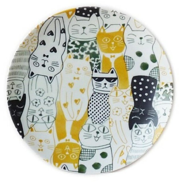 日本美濃焼AWASAKA貓貓瓦碟(黃色) 23CM (日本製)