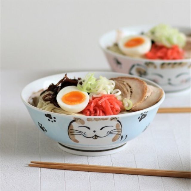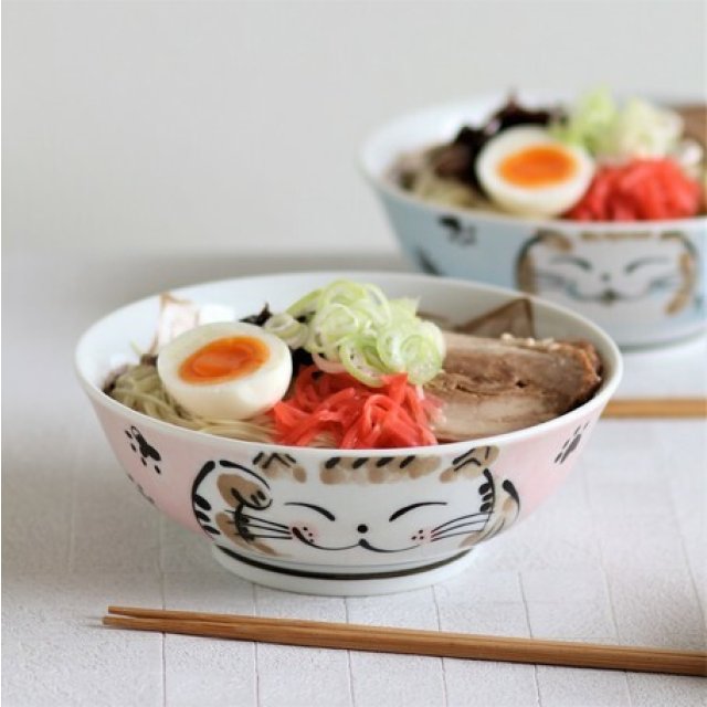 日本美濃焼招福貓瓦碗(粉藍) 19CM (日本製)