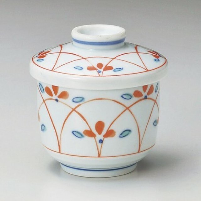 日本美濃焼赤小花茶碗蒸 (日本製)