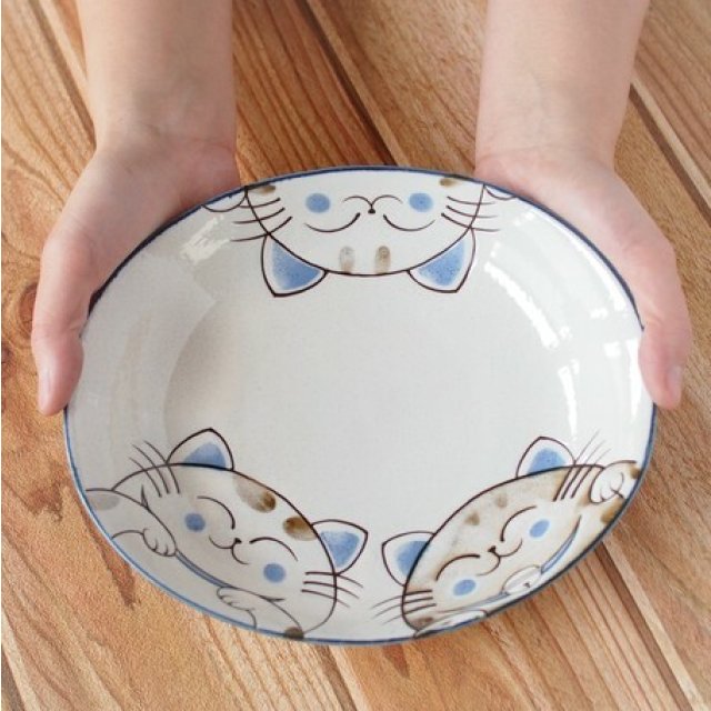 日本美濃焼招福貓瓦碟(粉藍) 22CM (日本製)