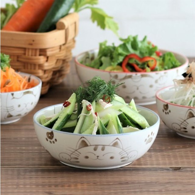 日本美濃焼招福貓瓦碗(粉藍) 15CM (日本製)