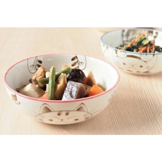 日本美濃焼招福貓瓦碗(粉紅) 15CM (日本製)