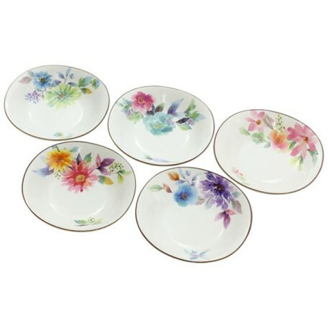 日本美濃燒花風雅瓦碗禮盒套裝 (5枚入) (日本製)