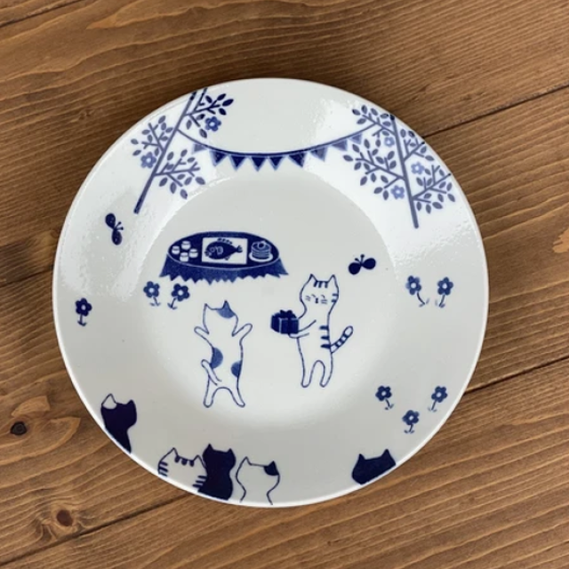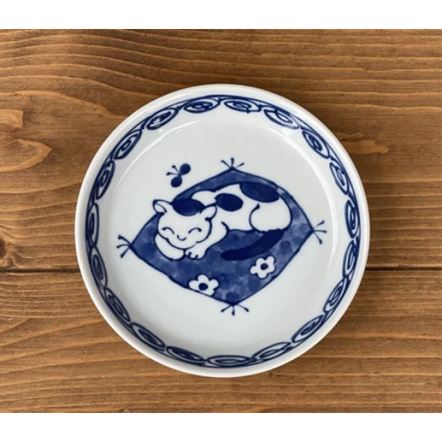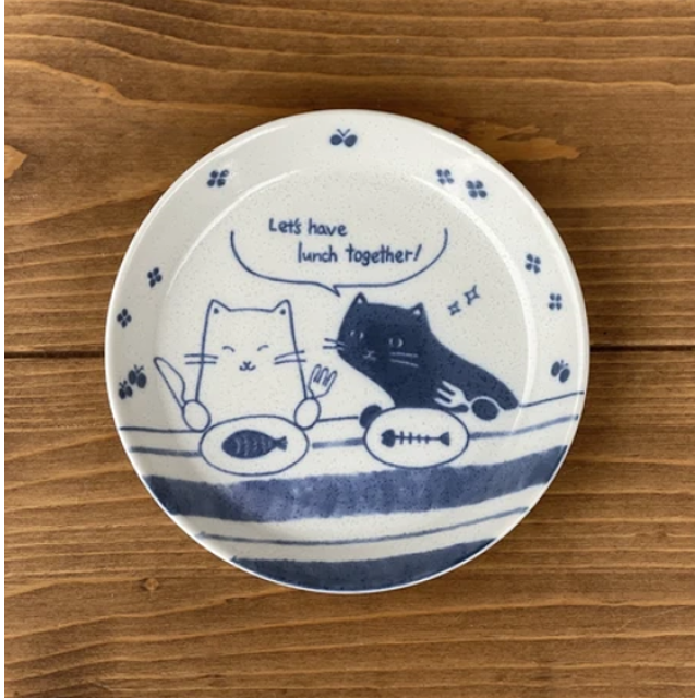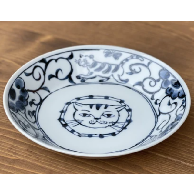 日本美濃燒藍染貓貓瓦碟 14CM (日本製)