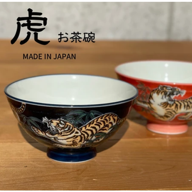 日本美濃燒虎お茶碗瓦碗(赤) 11CM (日本製)