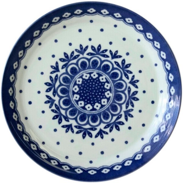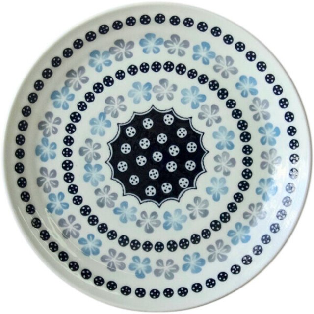 日本美濃燒岐阜縣花紋瓦碟20CM (藍點) (日本製)