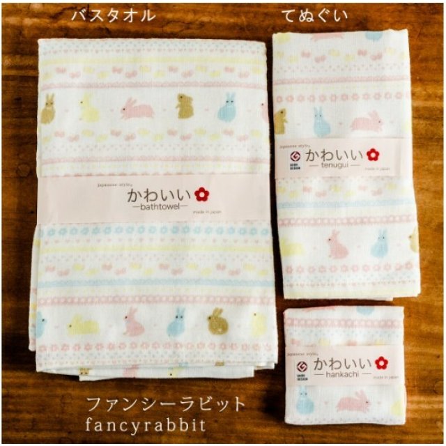 日式紗巾 30x30 (粉紅兔) (日本製)