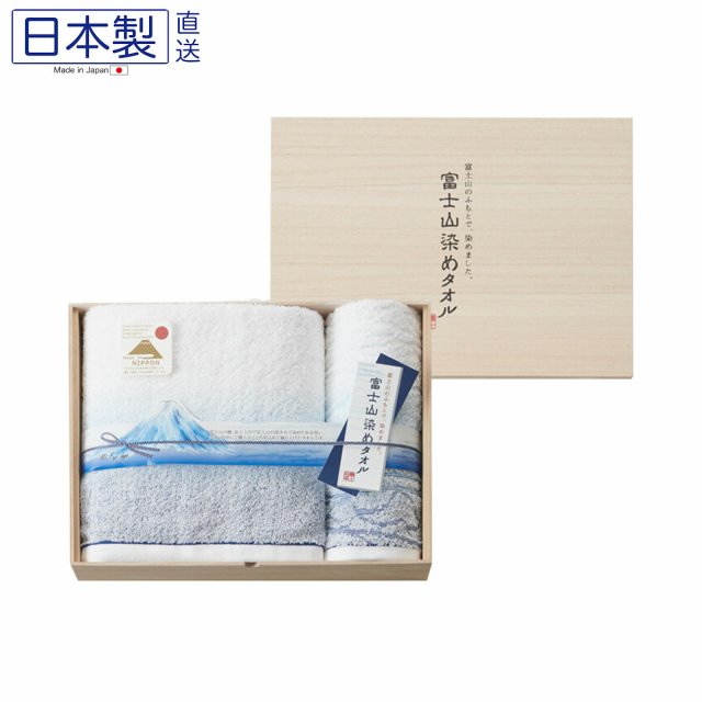 日本富士山染め豪華木盒毛巾套裝 (大浴巾+長毛巾) (日本製)