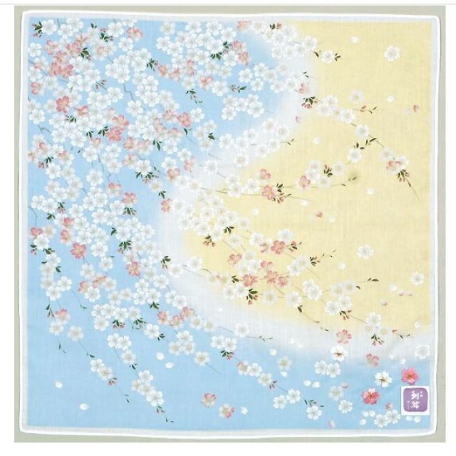 日本友禪刺繍櫻花富士山紗布方巾 (粉藍) 45x45 (日本製)