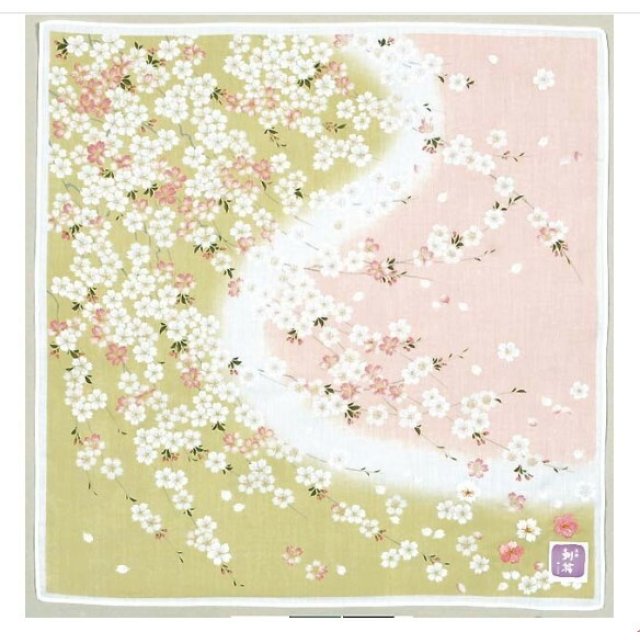 日本友禪刺繍櫻花紗布方巾 (粉綠) 45x45 (日本製)