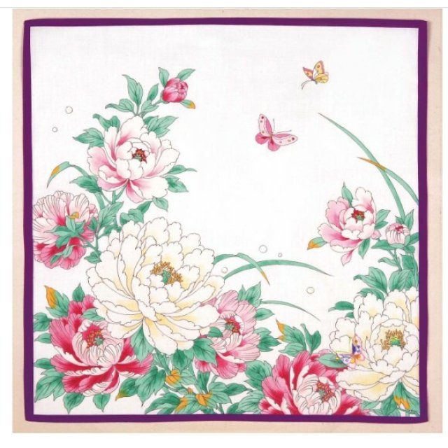 日本en.gawa刺繍牡丹花紗布方巾 (白色) 45x45 (日本製)