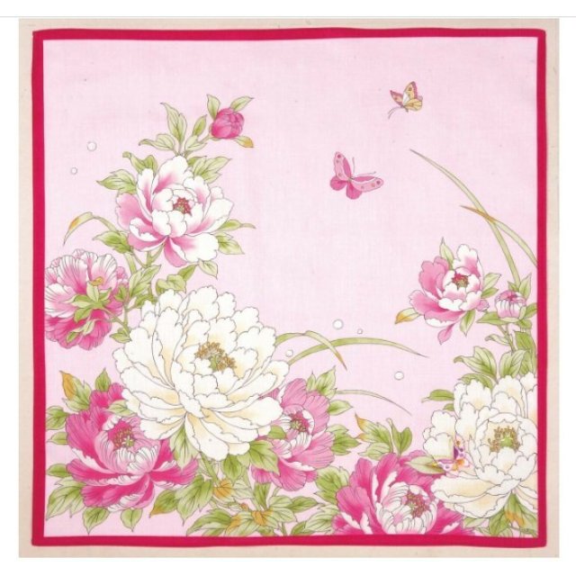 日本en.gawa刺繍牡丹花紗布方巾 (粉紅) 45x45 (日本製)