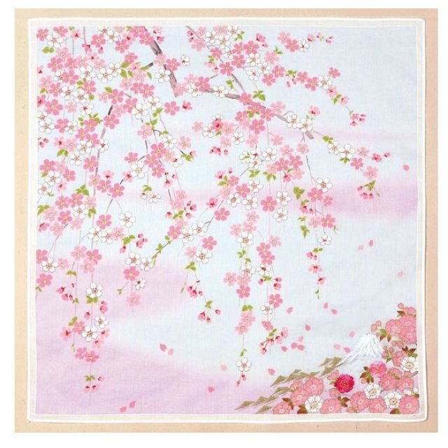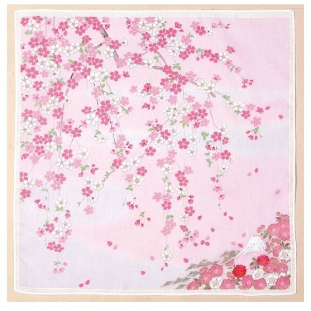 日本友禪刺繍櫻花富士山紗布方巾 (粉紅) 45x45 (日本製)