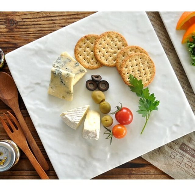 日本美濃燒仿石紋方形餐碟 (白色) 23CM (日本製)