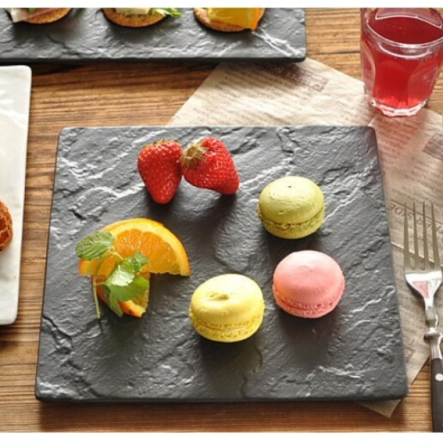 日本美濃燒仿石紋方形餐碟 (黑色) 23CM (日本製)