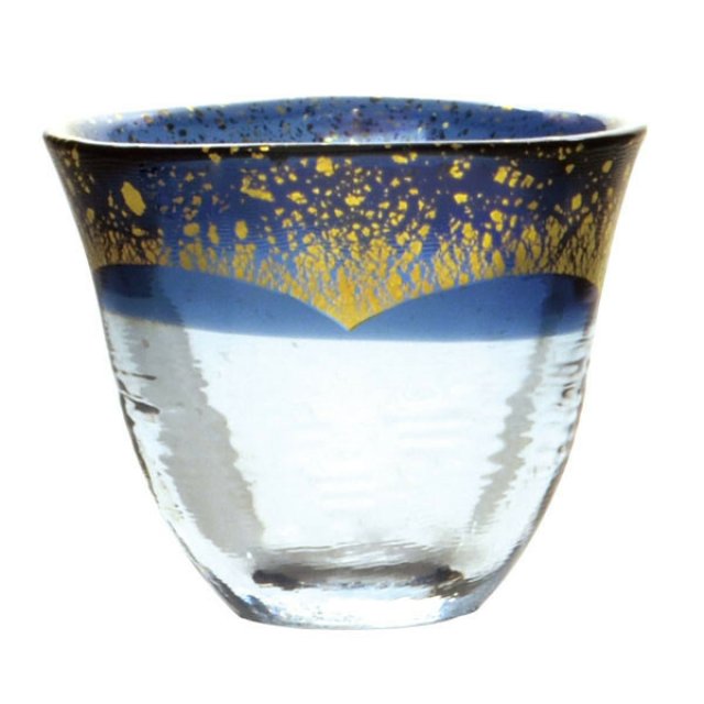 日本和がらす温藍金色清酒杯 (日本製)