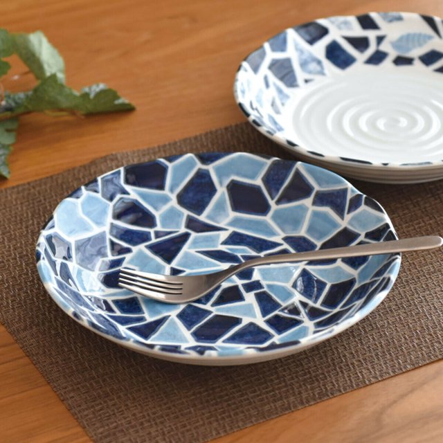 日本美濃燒海洋瓷磚花瓦碟 22CM (日本製)