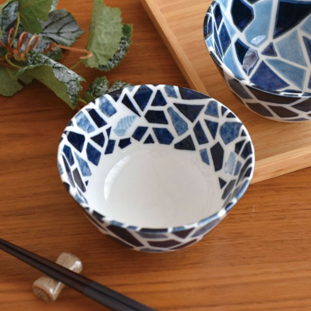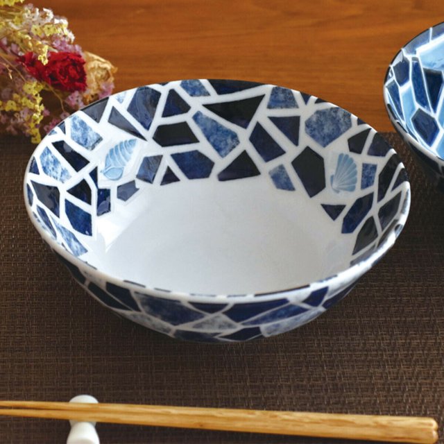 日本美濃燒海洋瓷磚花瓦碗 12CM (日本製)