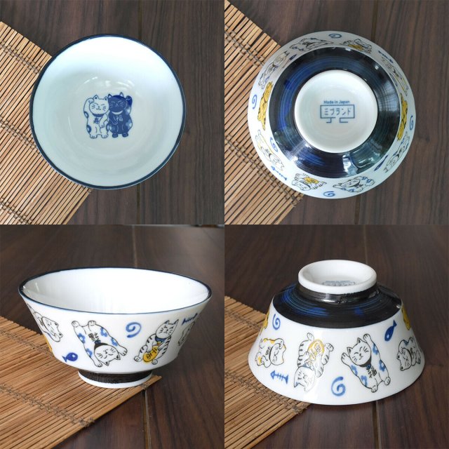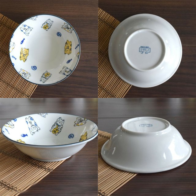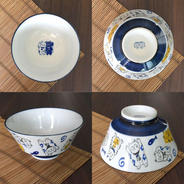 日本美濃燒福を招財貓花瓦碗 14CM (日本製)