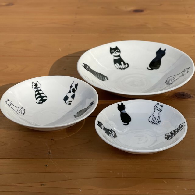 日本美濃燒黑白貓瓦碟 14CM (日本製)