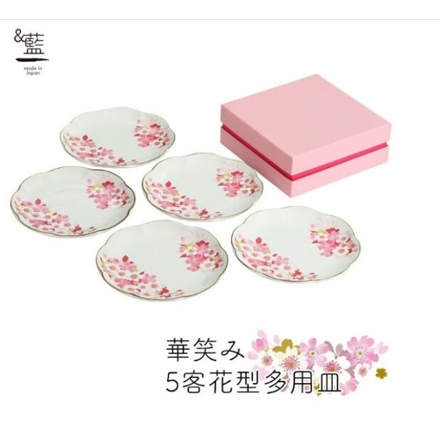 日本華甘露美濃燒櫻花瓦碟禮盒套裝 (5枚入) (日本製)