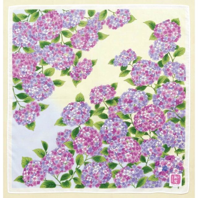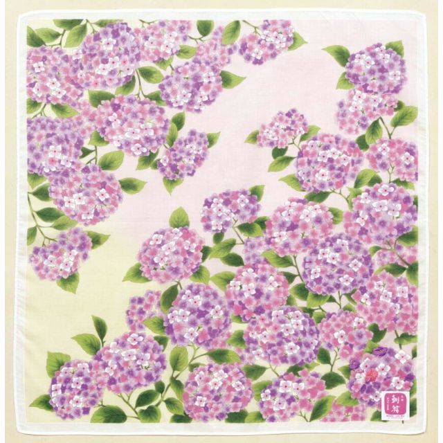 日本友禪刺繍紫陽花紗布方巾 (粉紫) 45x45 (日本製)