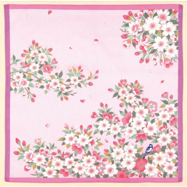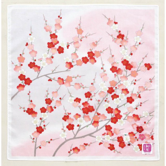 日本友禪刺繍万葉の梅紗布方巾 (粉紅) 45x45 (日本製)