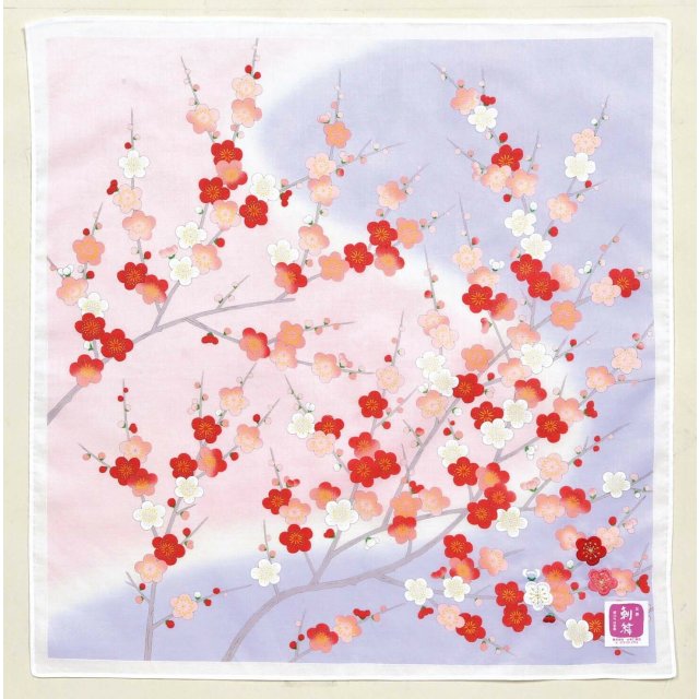日本友禪刺繍万葉の梅紗布方巾 (粉紫) 45x45 (日本製)