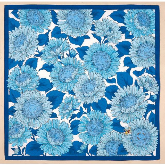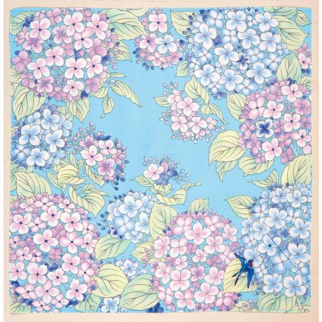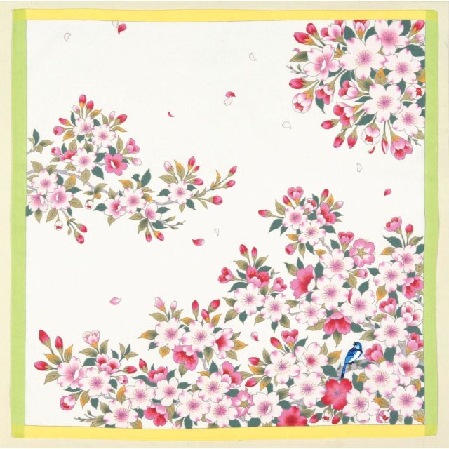 日本友禪刺繍万葉の梅紗布方巾 (粉藍) 45x45 (日本製)