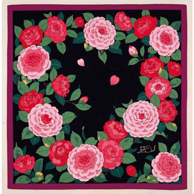 日本en.gawa刺繍乙女椿花紗布方巾 (深紅) 45x45 (日本製)