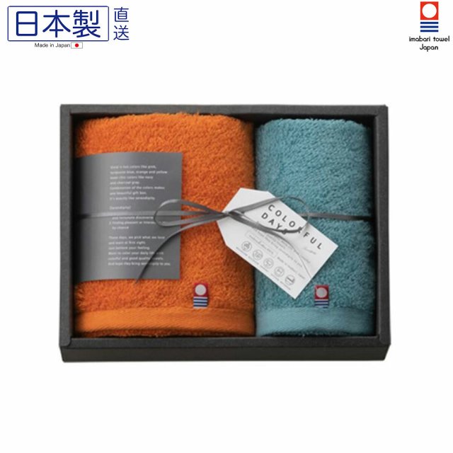 日本今治xColorful Days禮盒(長毛巾+方巾)(橙/粉藍) (日本製)