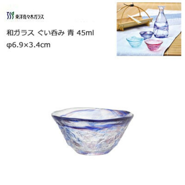 日本和がらす清酒杯(大) (青) (日本製)