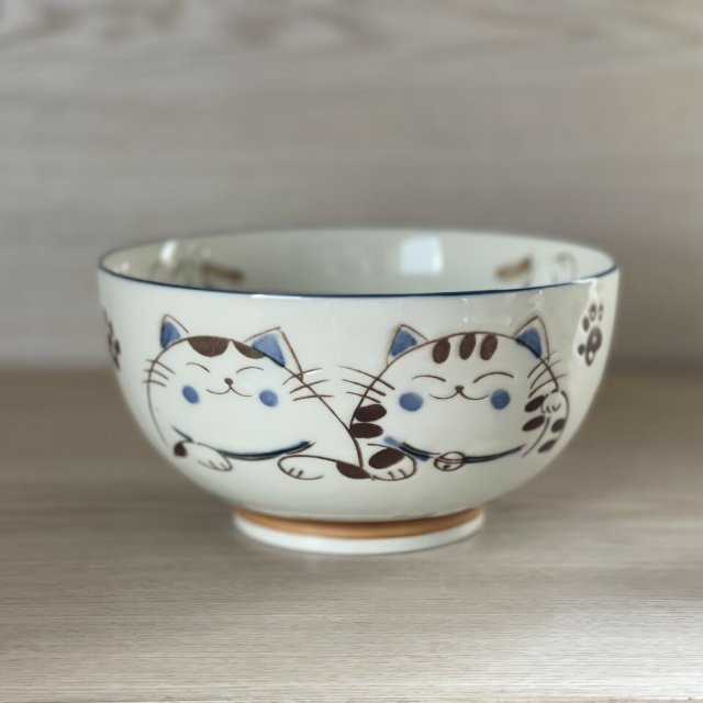 日本美濃燒招財貓瓦碗(粉藍) 16CM (日本製)