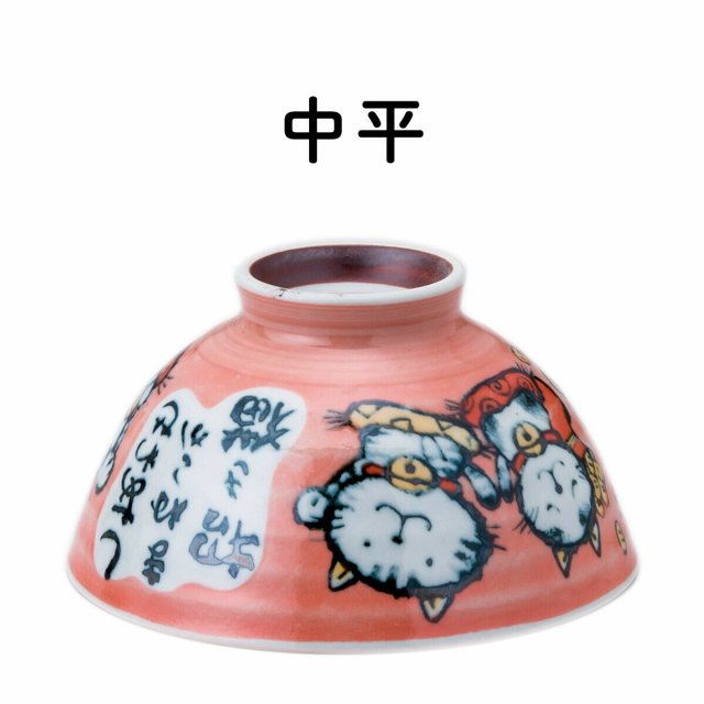 日本美濃燒招財貓瓦碗(粉紅) 11.4CM (日本製)