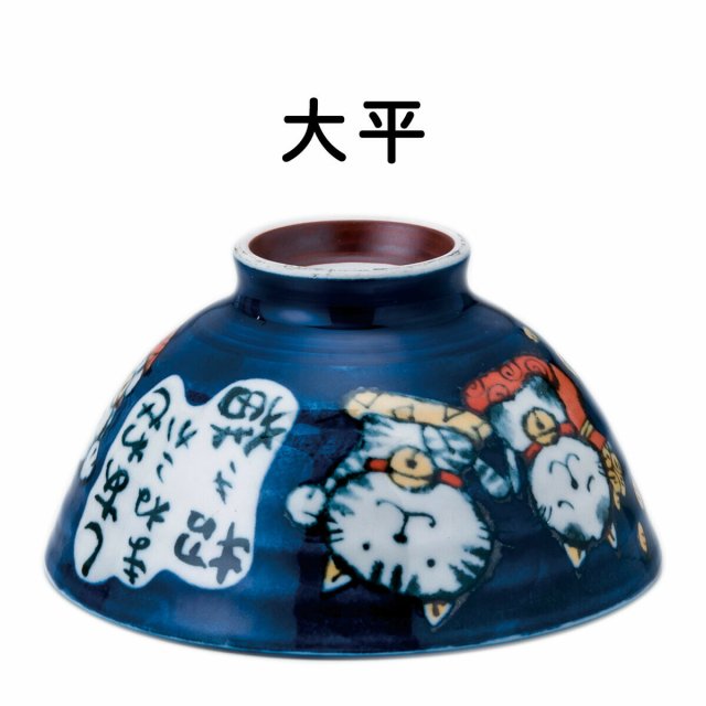 日本美濃燒招財貓大平瓦碗(粉藍) 12.6CM (日本製)