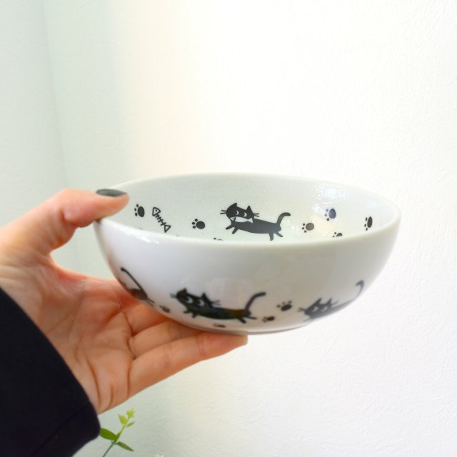 日本美濃燒黑貓瓦碗 16CM (日本製)