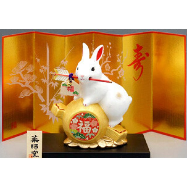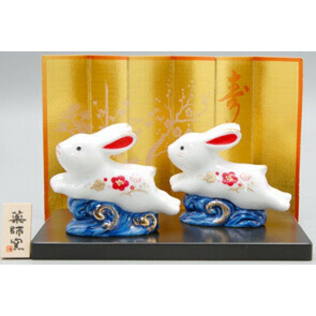日本陶瓷染錦招福兔仔擺設(雙人) (日本製)
