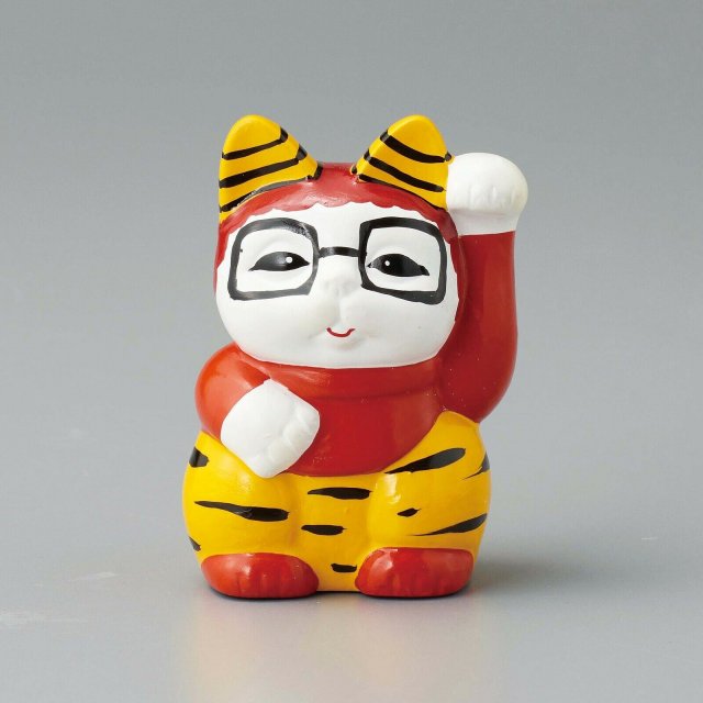 日式陶瓷職人の手書招財貓擺設(赤) (日本製)