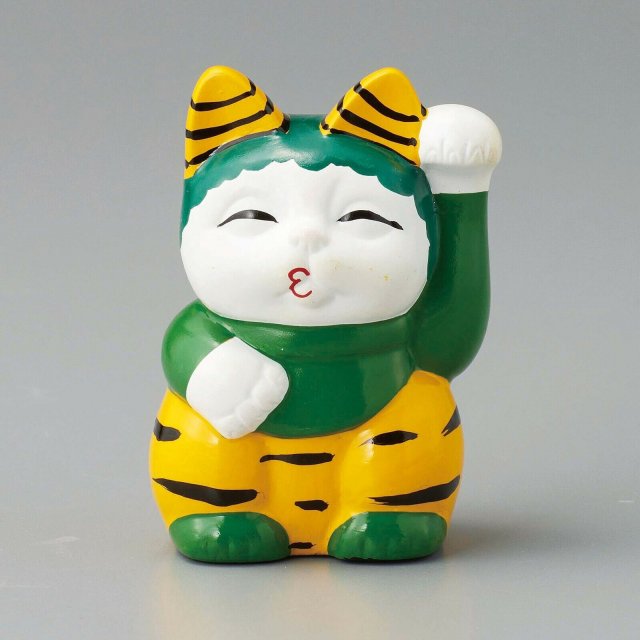 日式陶瓷職人の手書招財貓擺設(綠) (日本製)