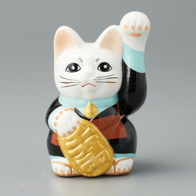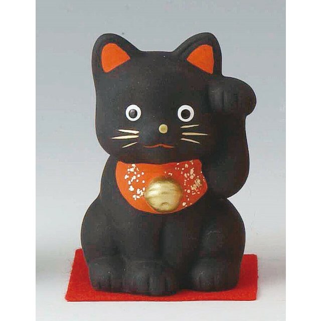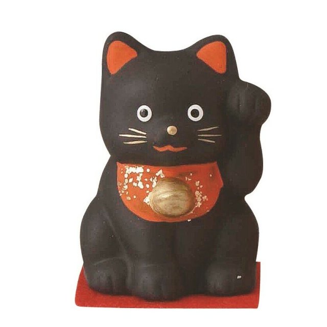 日式陶瓷職人の手書招財貓擺設(黑) (日本製)