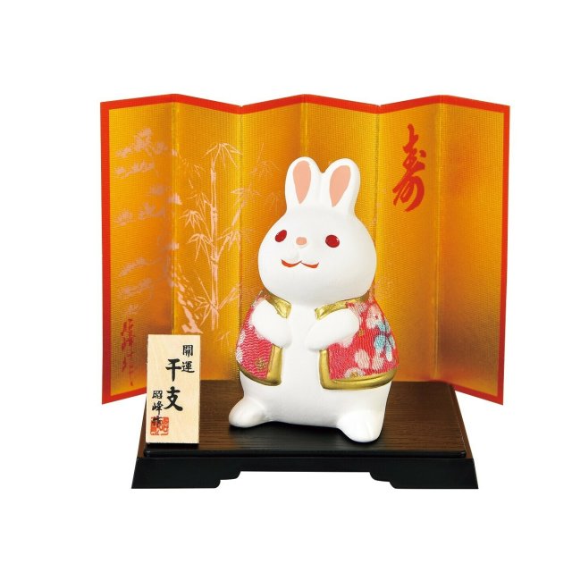日式陶瓷開運飛躍向上兔仔擺設 (日本製)