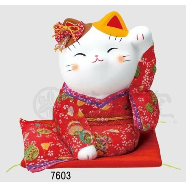 日式陶瓷和服招福猫(特大) (紅色) (日本製)