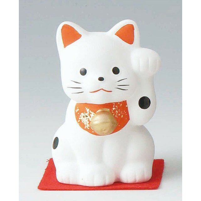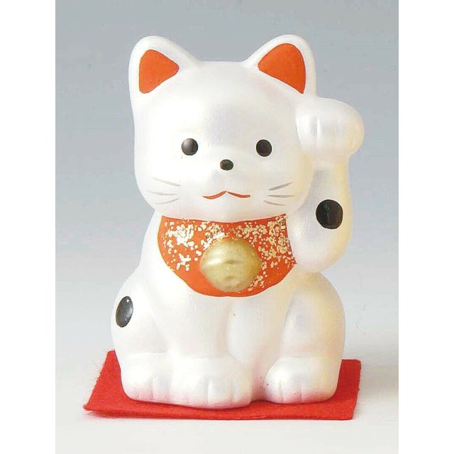 日式陶瓷幸福を招福猫 (小)(白色) (日本製)