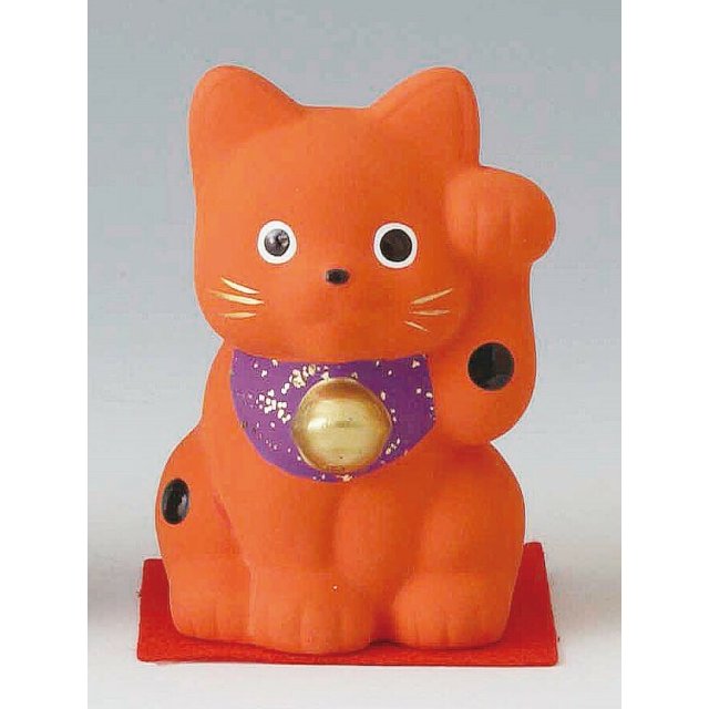 日式陶瓷幸福を招福猫 (小)(赤色) (日本製)